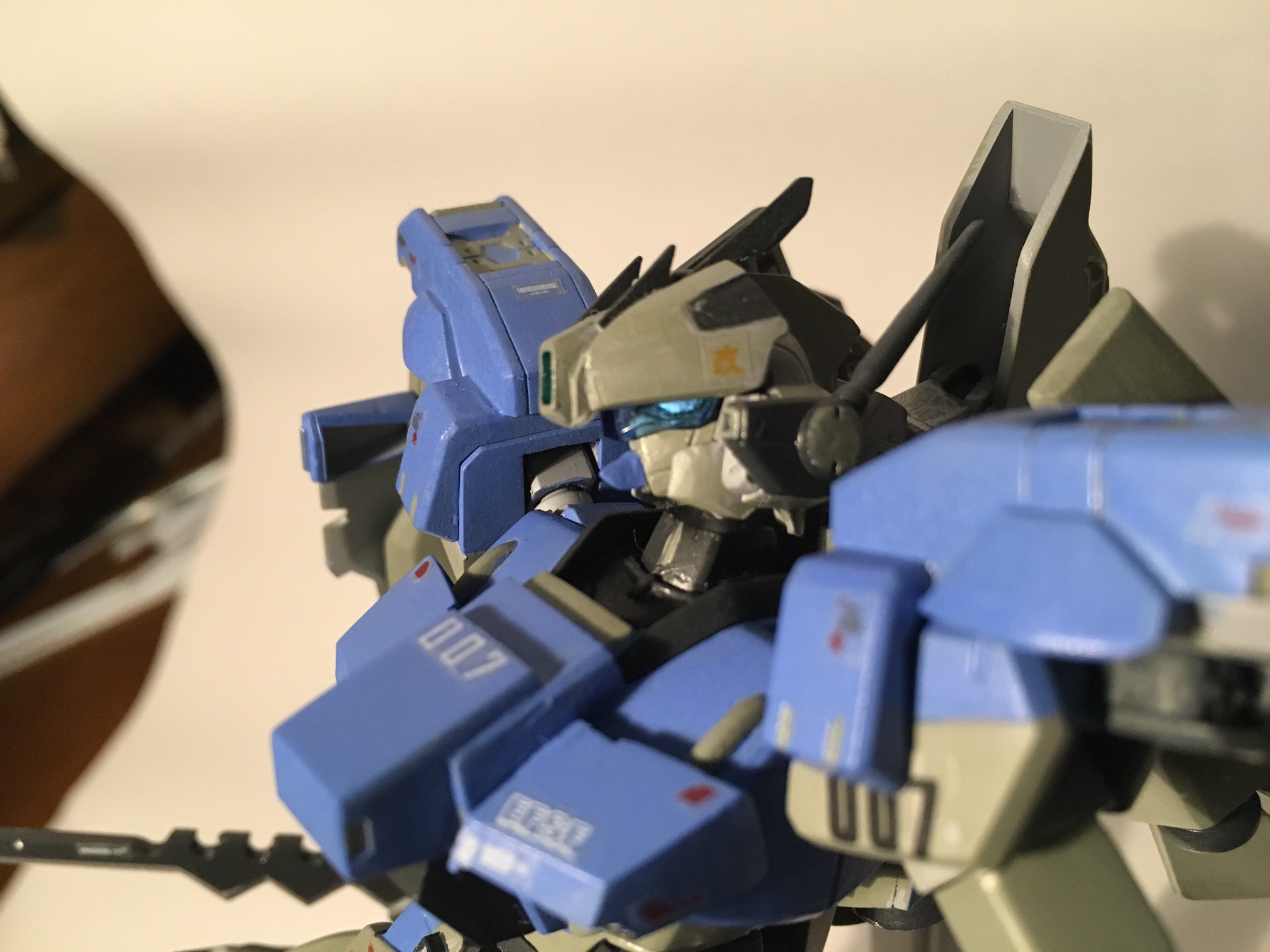 ジェガンをベースとした試作型MS、ロングレンジでの戦闘を想定して作られた機体だが近接戦もこなすことが出来る。(というか製作者が近接馬鹿なので普通に切り込む)ナイトロシステムを搭載しているため、ファンネルを使用することが出来るほかバーニアを後方に集中させどんなレンジでも迅速に移動し間合いに入ることが出来る機動力を持つ。