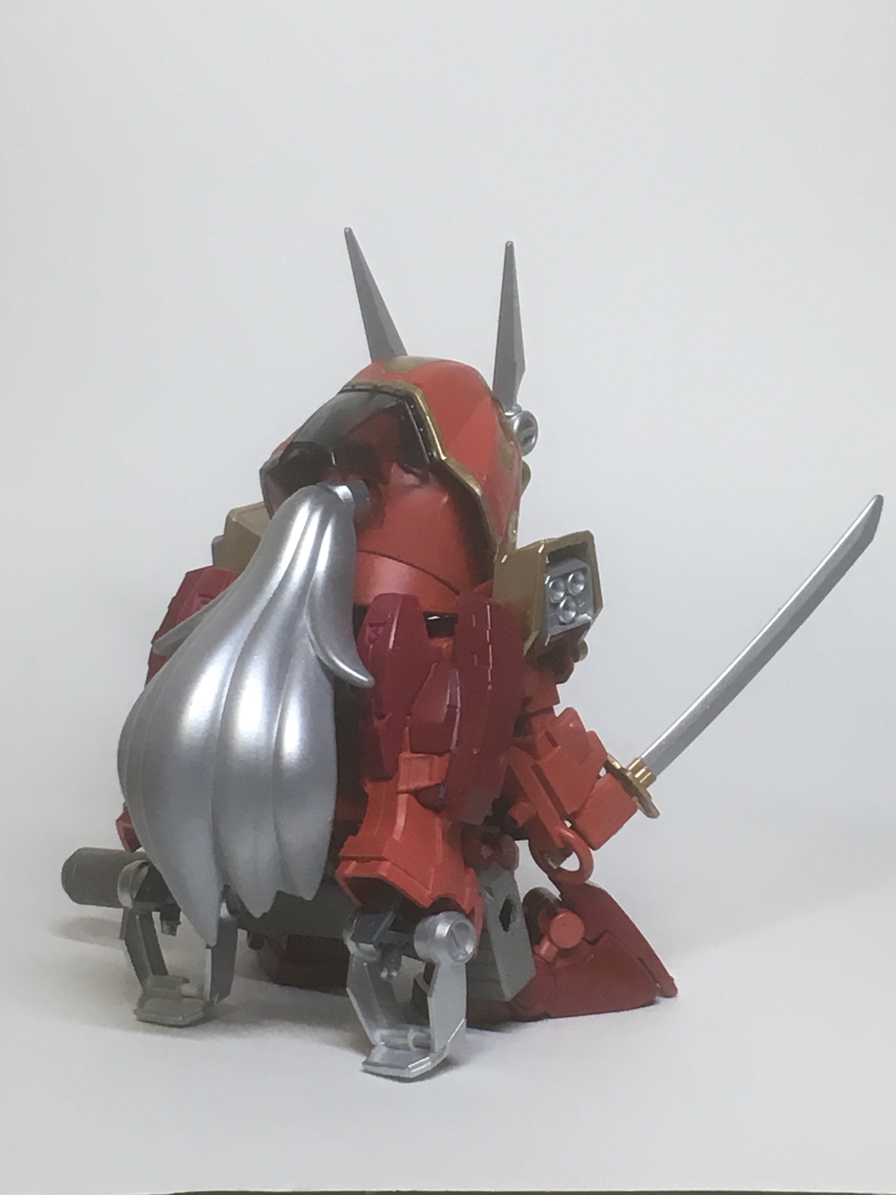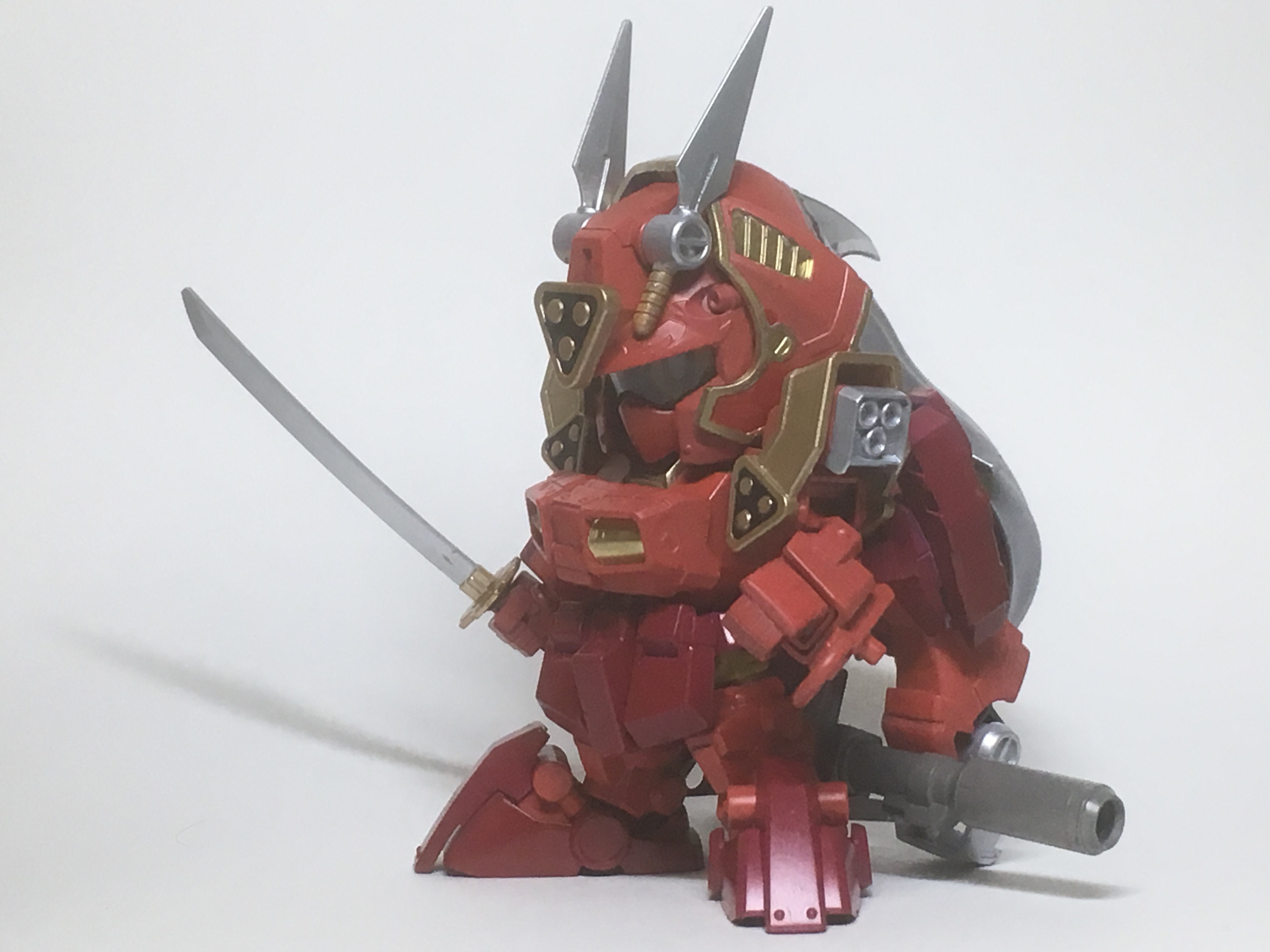 いつもは他のキットを購入してパーツ取りしたりしていたのですが、今回は手持ちのジャンクパーツや過去に購入した予備パーツのみの構成で、HGリバイブ・ギャンをベースに、より騎士っぽく見えるように製作しました。