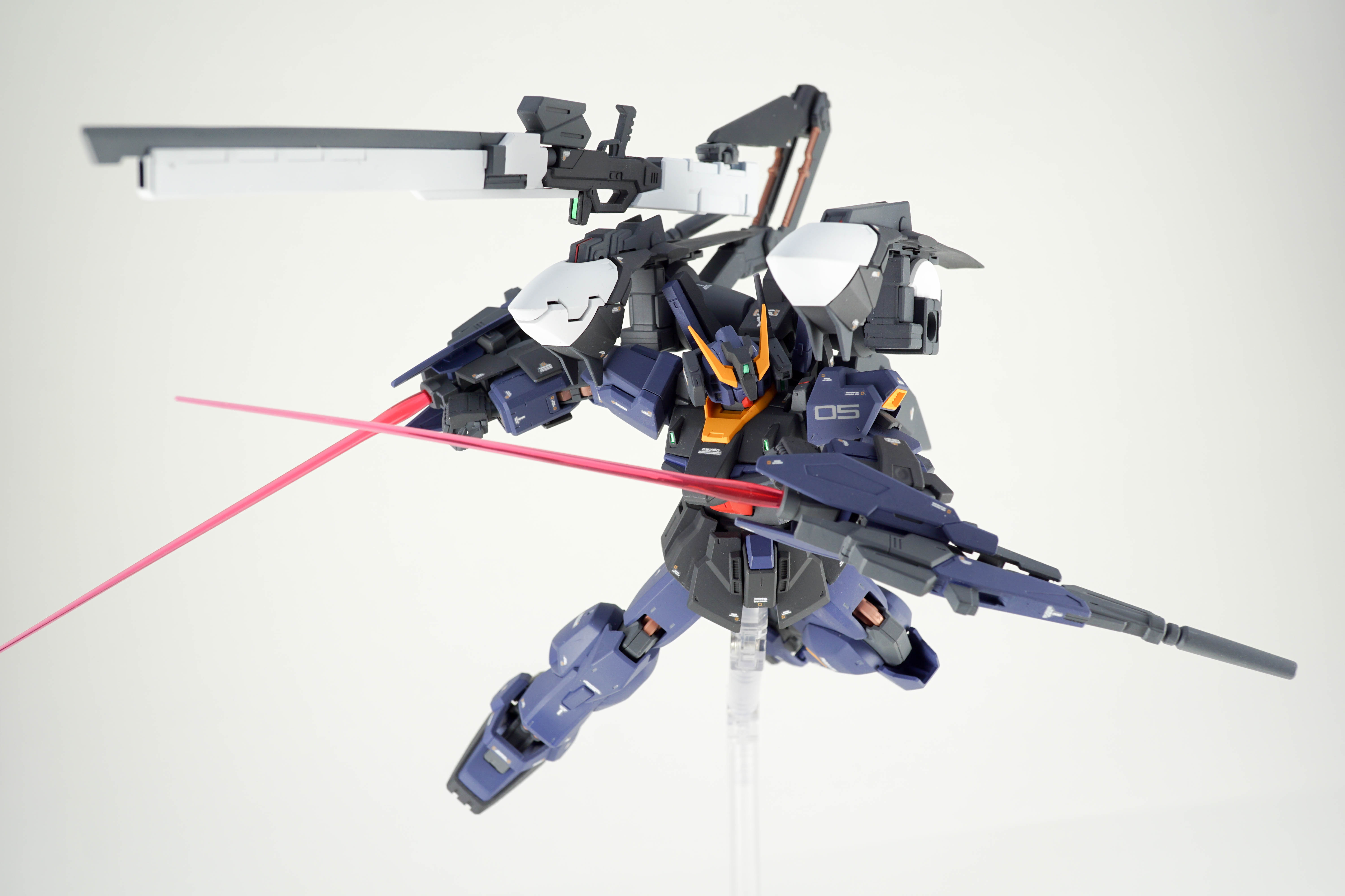 3)先端に装備されたビームサーベル。トランザム時には長さが3倍になる。